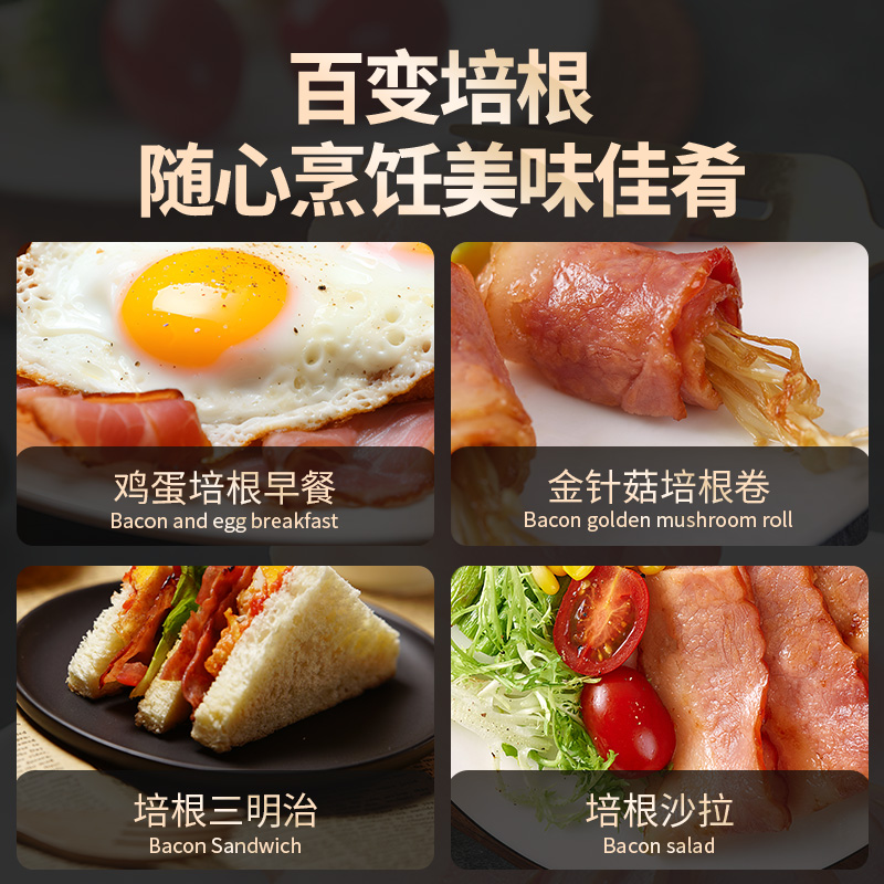 金忠培根片早餐三明治烟熏肉片170g儿童手抓饼烘焙配菜批发食材