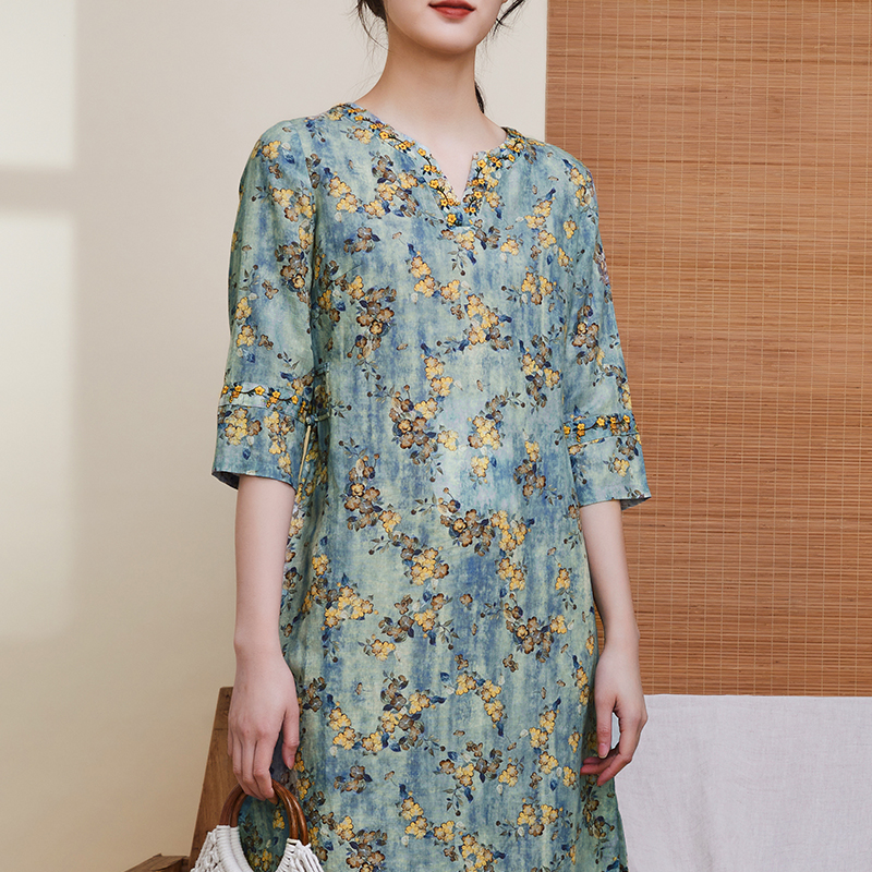 显瘦气质流行女装 复古手工珠绣修身 夏季 布符原创连衣裙新款