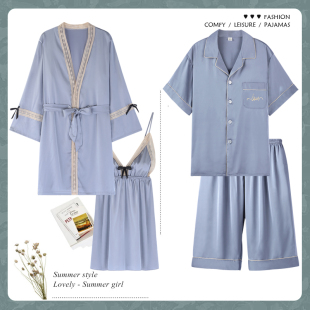 套装 男士 高级感家居服 性感吊带睡裙女短袖 乐姿梦情侣冰丝睡衣薄款