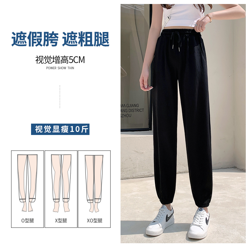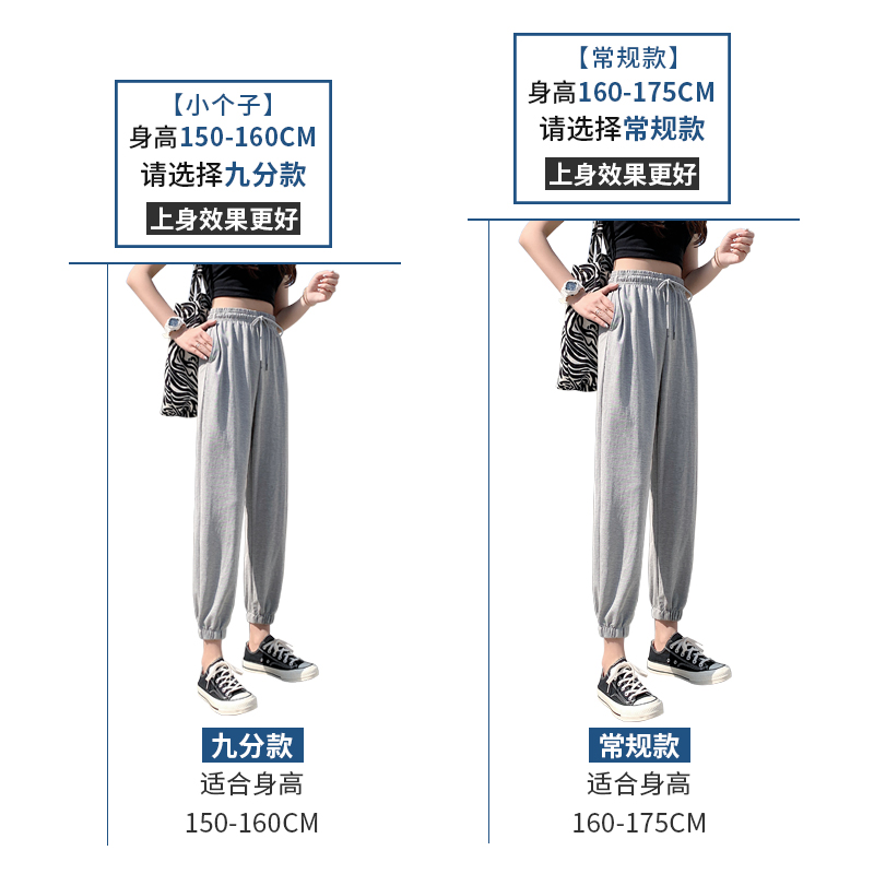 女夏季 九分直筒休闲裤 薄款 宽松束脚灯笼裤 子 防蚊裤 灰色冰丝运动裤