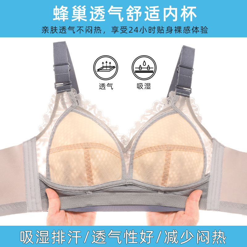 薄款 夏防下垂无钢圈文胸罩大胸显小超聚拢收副乳 内衣女调整型大码
