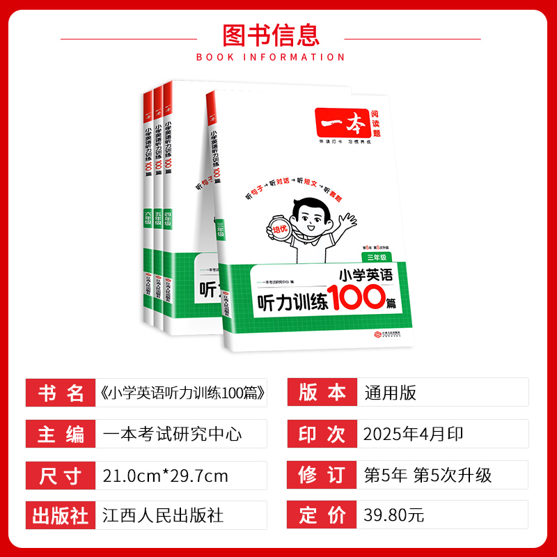 2025版 一本小学英语听力训练100篇三四五六年级英语同步听力突破专项强化训练英语练习步步练听力周计划阅读模拟测试题含答案音频
