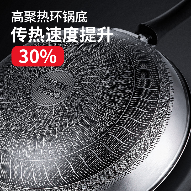 真钛0涂层炒锅无涂层家用不粘锅不锈钢炒菜锅 康巴赫Pro版 新品