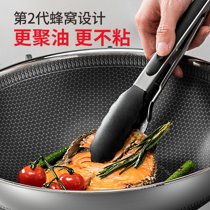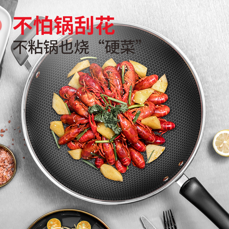苏泊尔不粘锅家用炒锅304不锈钢蜂窝不粘炒菜锅电磁炉燃气灶通用