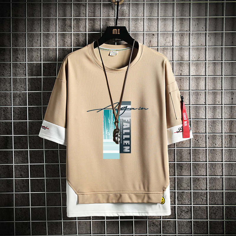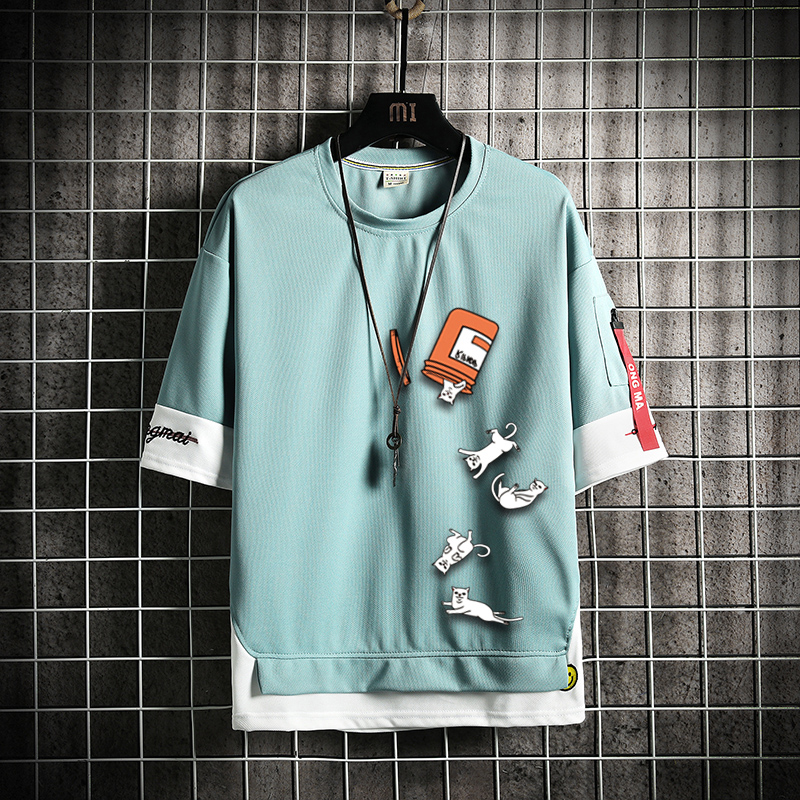 潮牌短袖 冰丝五七分袖 t恤男生宽松大码 半袖 上衣服 体恤情侣装 夏季