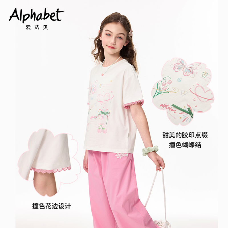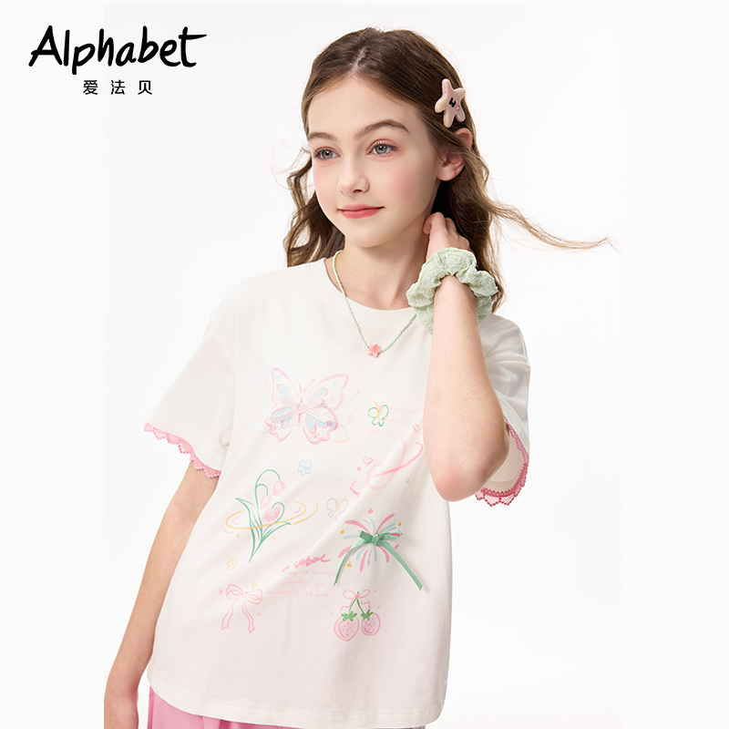 短袖 T恤小女孩小清新t恤百搭圆领半袖 T甜美 女童短袖 爱法贝夏新款