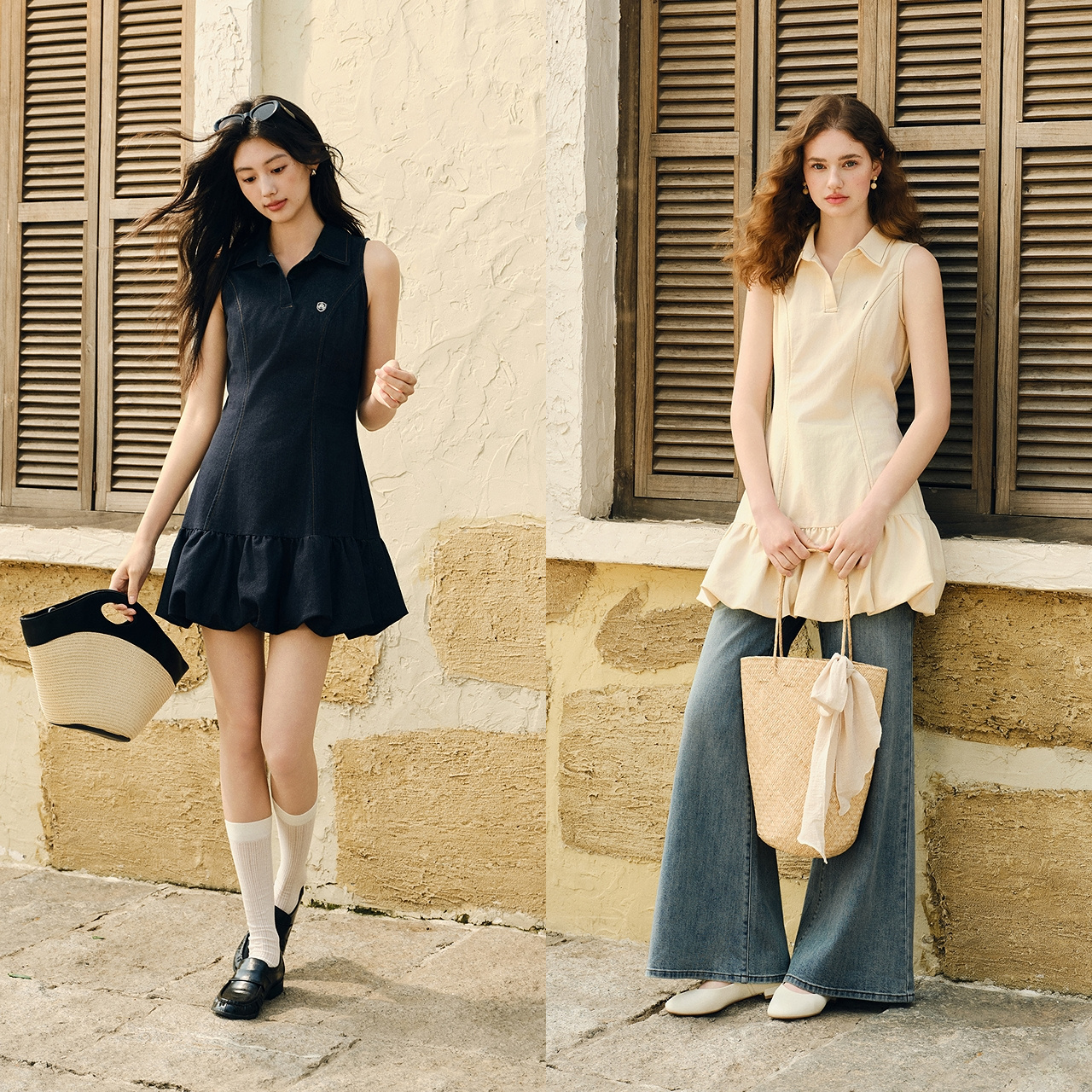 小香风v领连衣裙短款 朗姿无袖 艺术家联名 2025年新款 秀场同款
