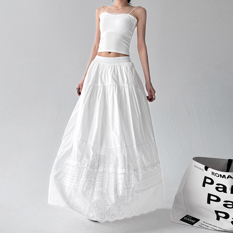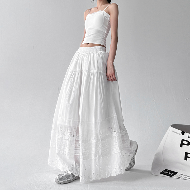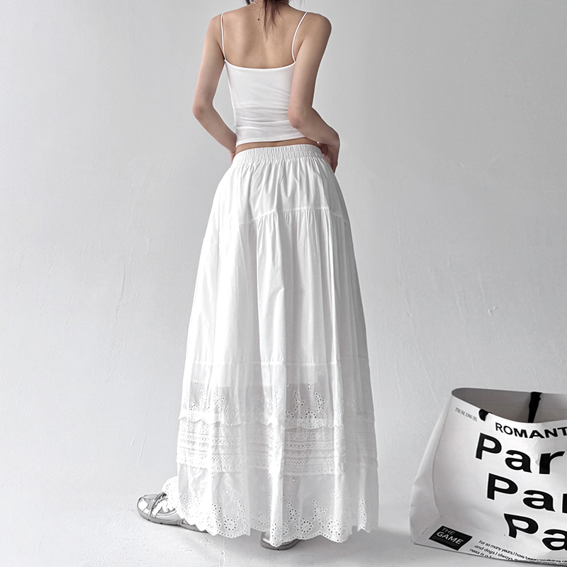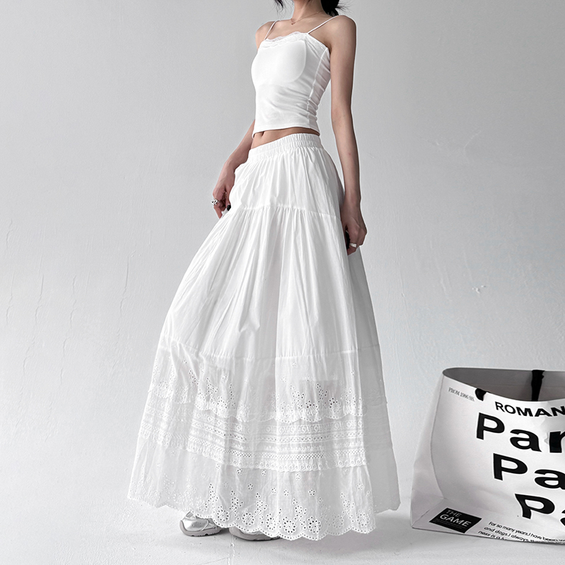 波西米亚镂空花边刺绣半身裙女2025新款 慵懒垂感白色伞裙 夏日法式