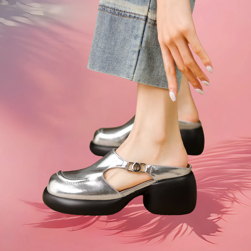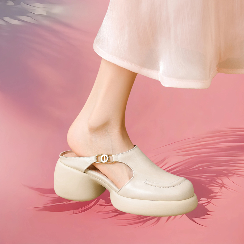 真皮 一脚蹬懒人博肯鞋 春秋勃肯鞋 女包头孕妇半拖外穿2025复古新款