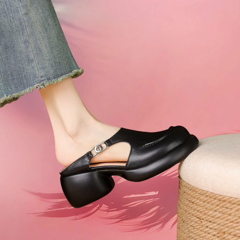 女款 包头海边半拖鞋 外穿夏季 厚底凉拖防滑沙滩鞋 女 2025新款 洞洞鞋