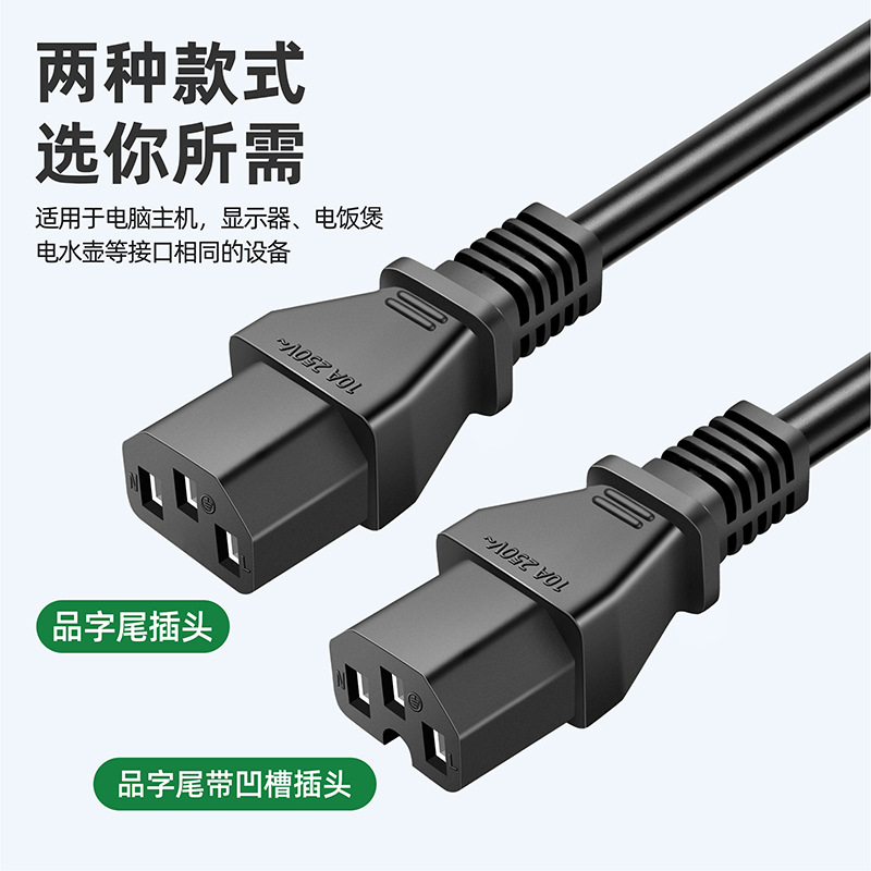 国标品字尾电源线3芯凹槽插头线电脑显示器电饭锅水壶三插连接线豆浆机水壶主机电动车压力锅电源线