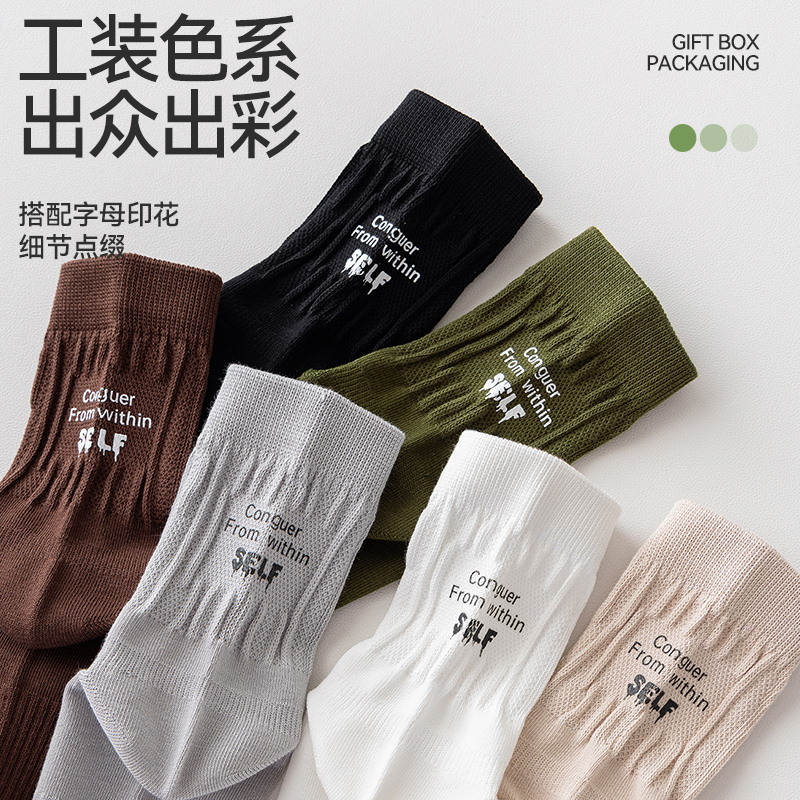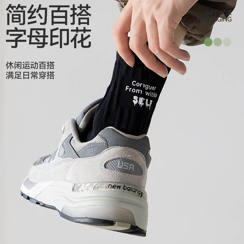 男士 夏季 棉袜 风吸汗透气防臭春秋款 袜子男潮流百搭中筒袜字母工装