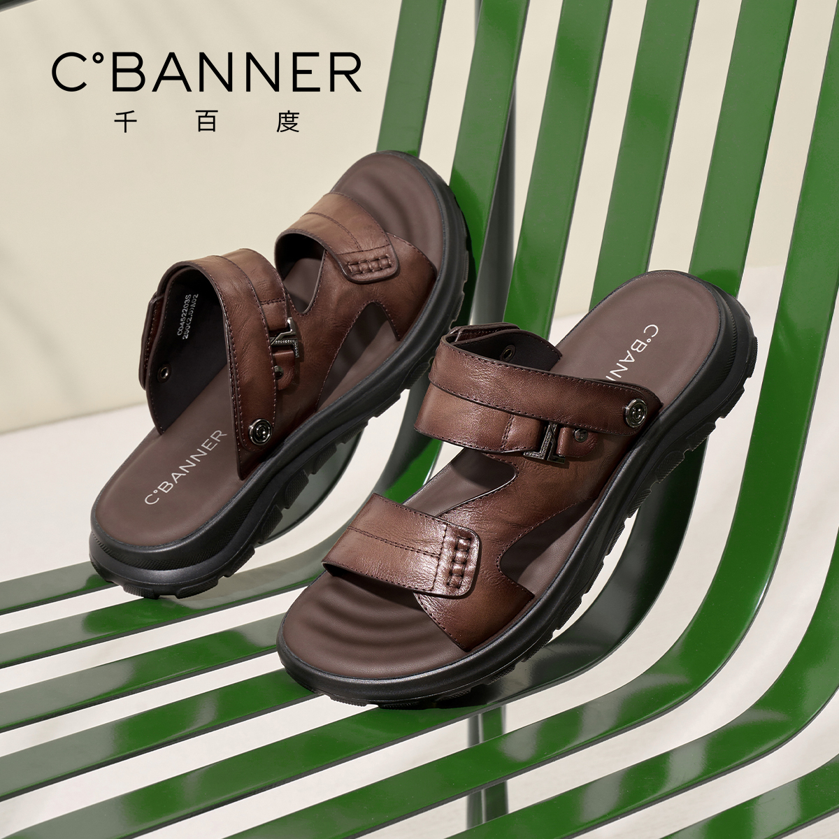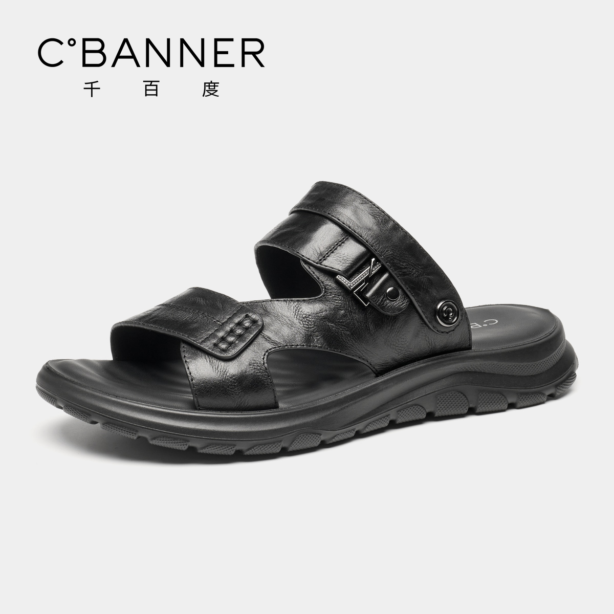 新款 凉鞋 男士 休闲沙滩鞋 千百度夏季 时尚 真皮凉拖男鞋 头层牛皮