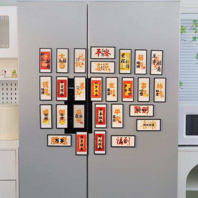 创意磁吸冰箱贴新年中国风复古木框磁铁创意国潮平安顺遂冰箱装 饰