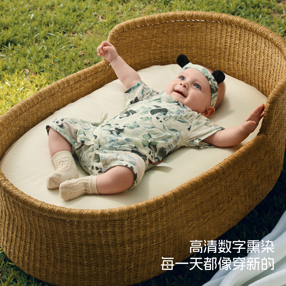 薄款 aqpa爱帕天丝新生儿婴儿衣服莱赛尔夏季 宝宝连体衣 熊猫秘境