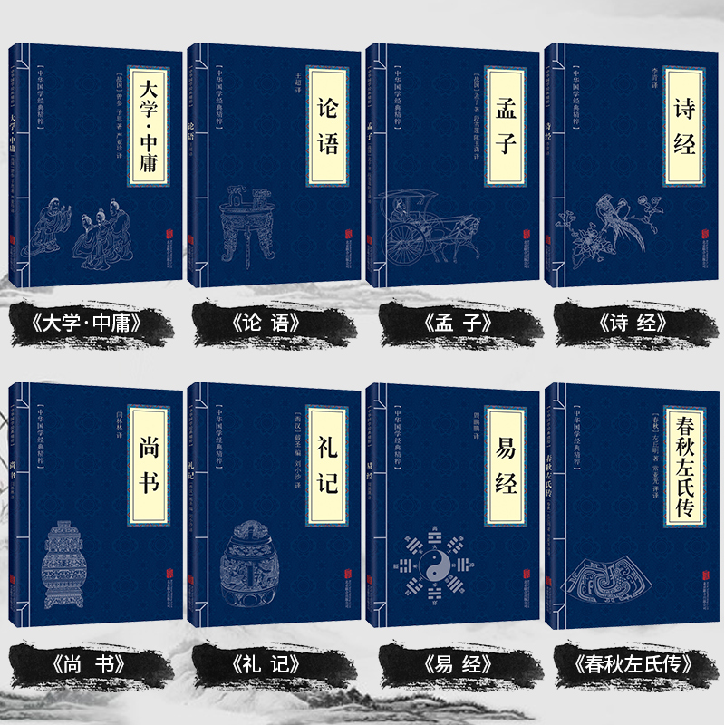 全套8册春秋左氏传易经礼记尚书诗经孟子论语大学中庸经典 精粹 读本文白对照原文注释译文国学中国古典名著书籍古代哲学谋略正版