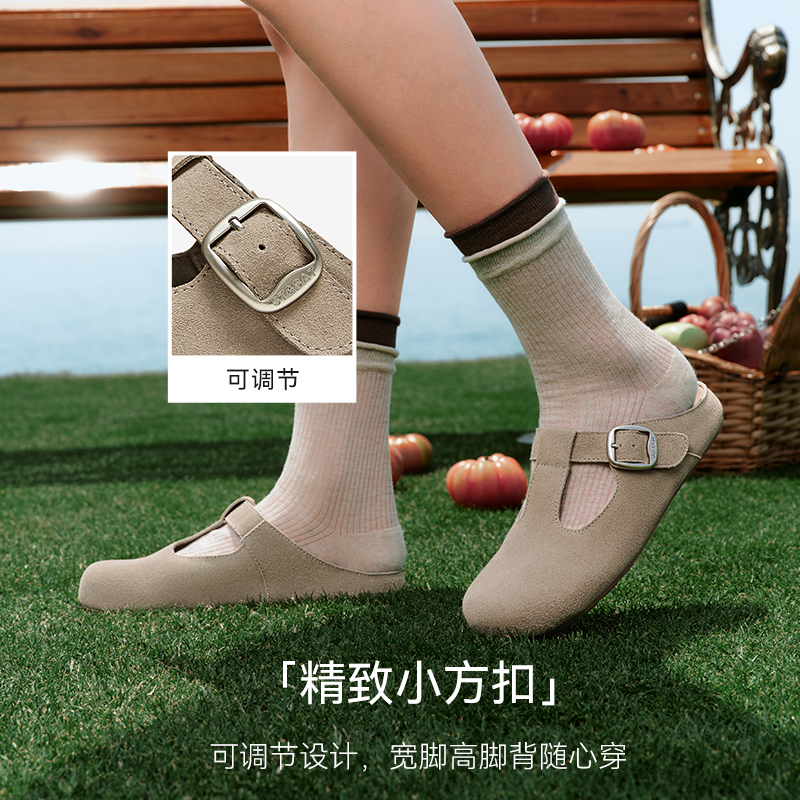 平跟女凉鞋 百思图2025夏季 复古运动勃肯鞋 商场同款 B6751BH5 新款