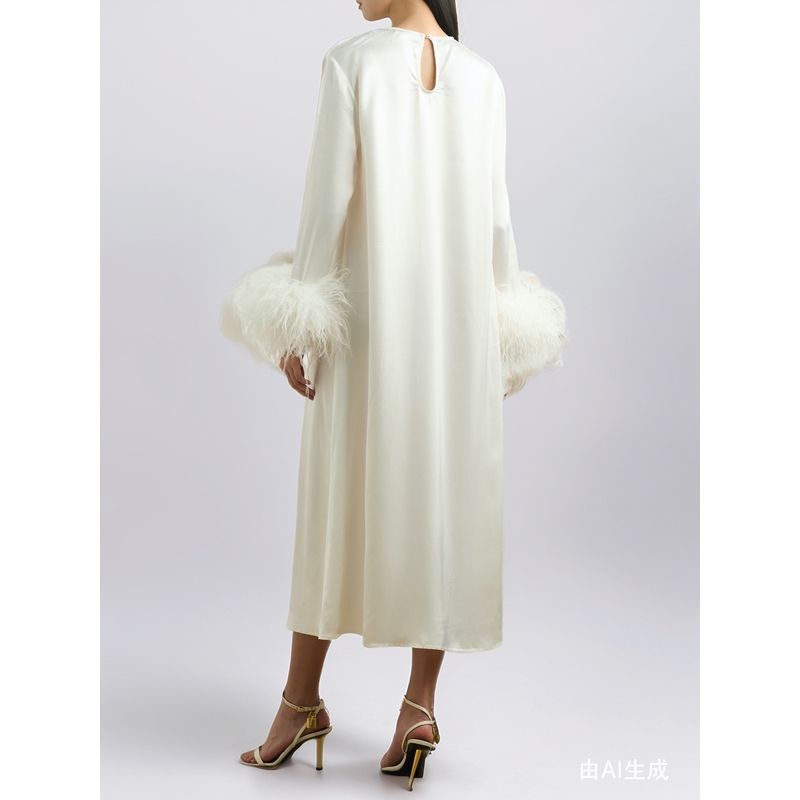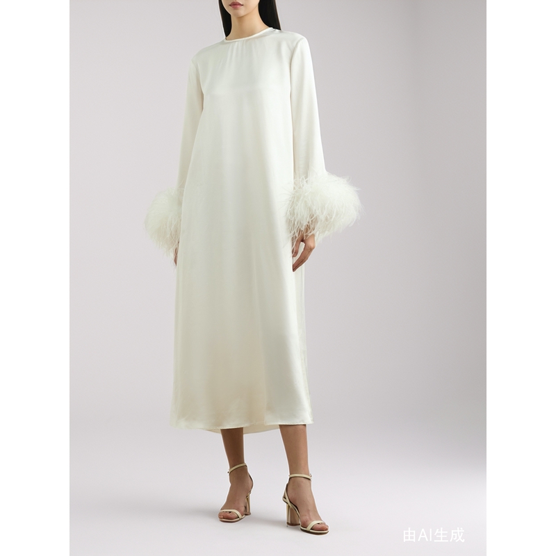 SLEEPER女士羽毛边饰缎面斜纹布中长连衣裙 折扣