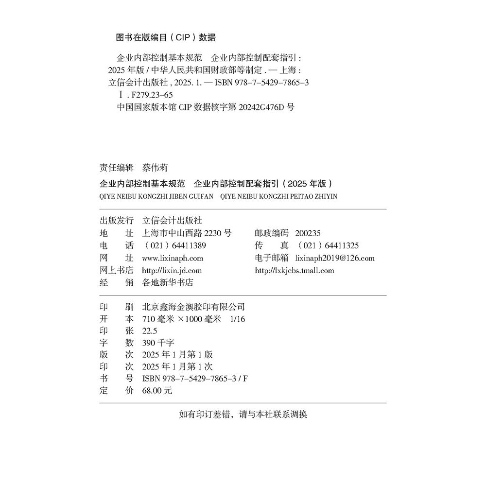 立信会计出版 企业内部控制培训用书 社内控制度流程条文解读书籍 企业内部控制基本规范企业内部控制配套指引2025年版 赠视频课程