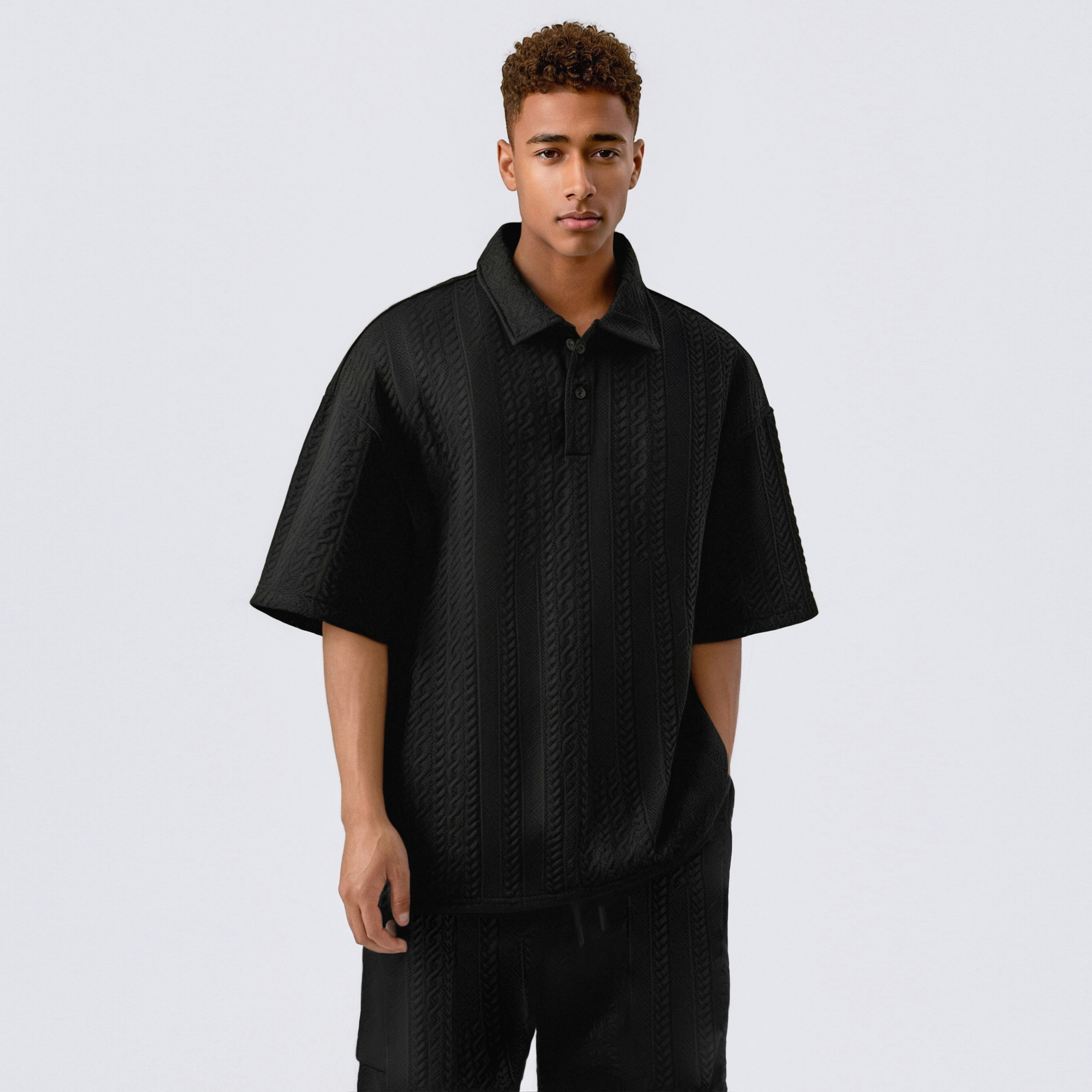 休闲宽松情侣装 bdpowerup肌理感polo衫 男夏季 复古短袖 t恤 男美式
