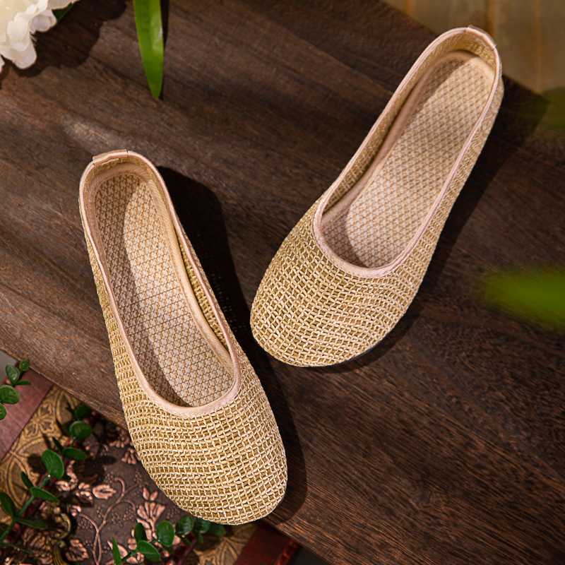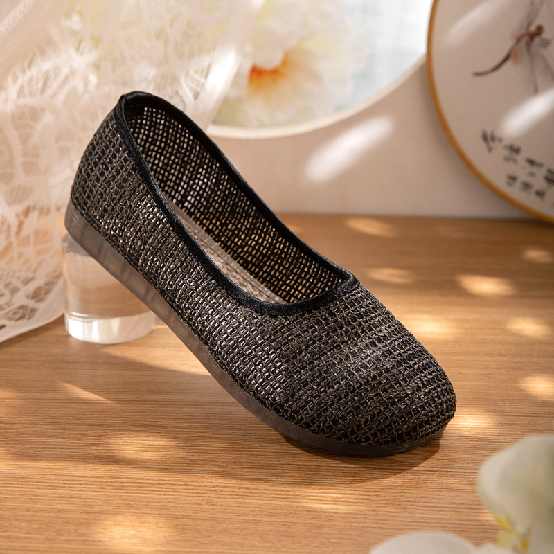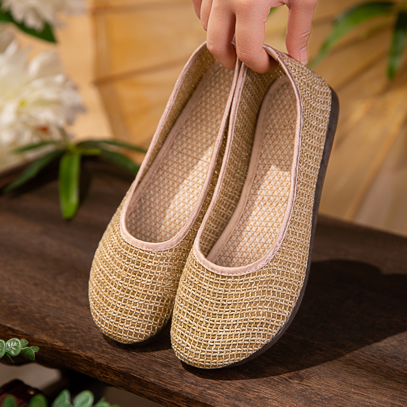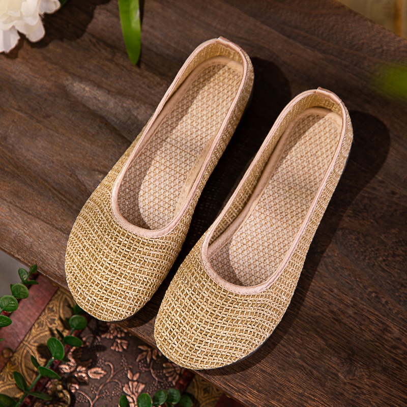 复古禅意妈妈鞋 老北京布鞋 软底一脚蹬单鞋 亚麻编制透气凉鞋 女夏季