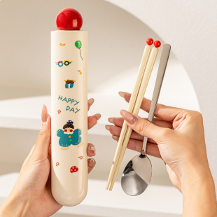 小学生筷子勺子套装 一人用筷子收纳盒 不锈钢便携儿童专用餐具套装