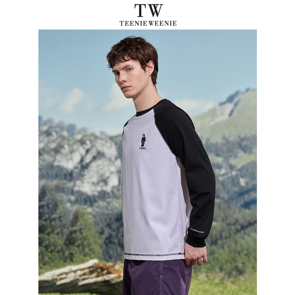 休闲宽松刺绣凉感透气长袖 简约插肩袖 T恤夏 Weenie小熊男装 Teenie