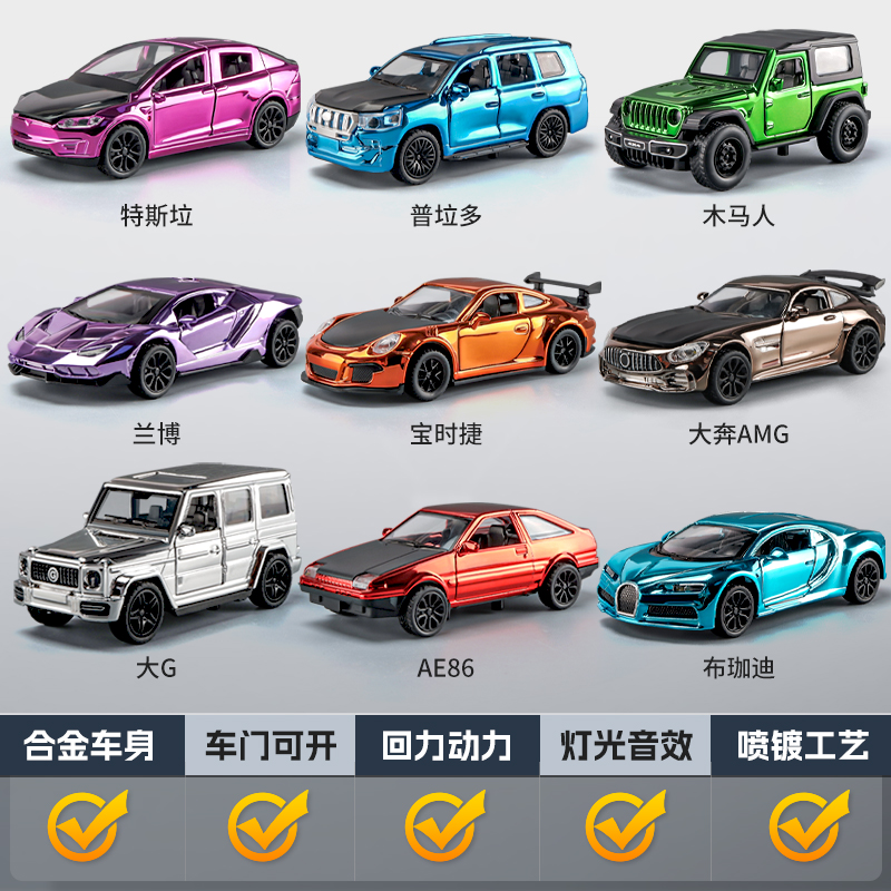 36电镀合金车模仿真跑车玩具车摆件儿童收藏礼物男孩小汽车模型