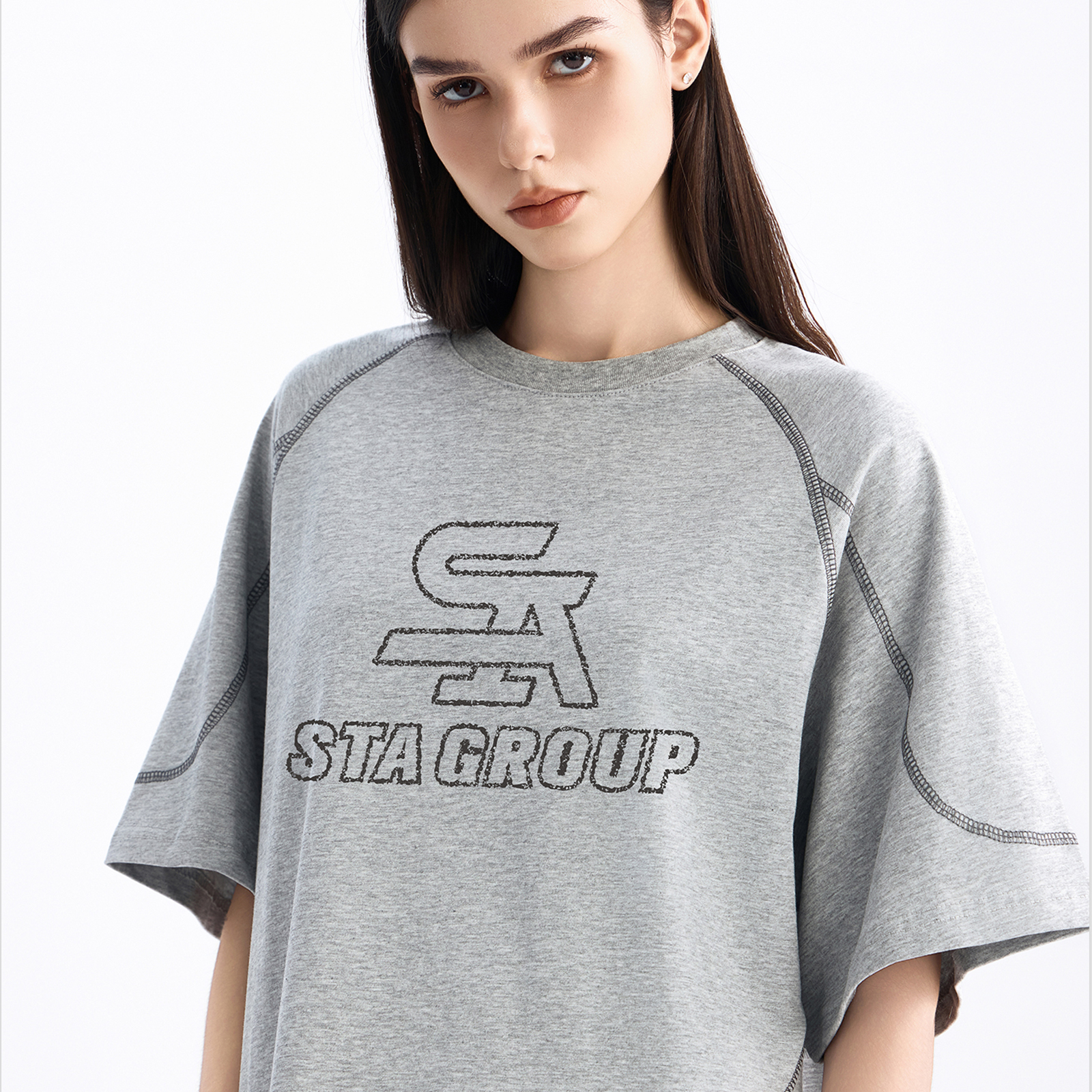 新款 T恤男女夏季 宽松百搭情侣 圆领复古字母印花纯棉短袖 STA美式
