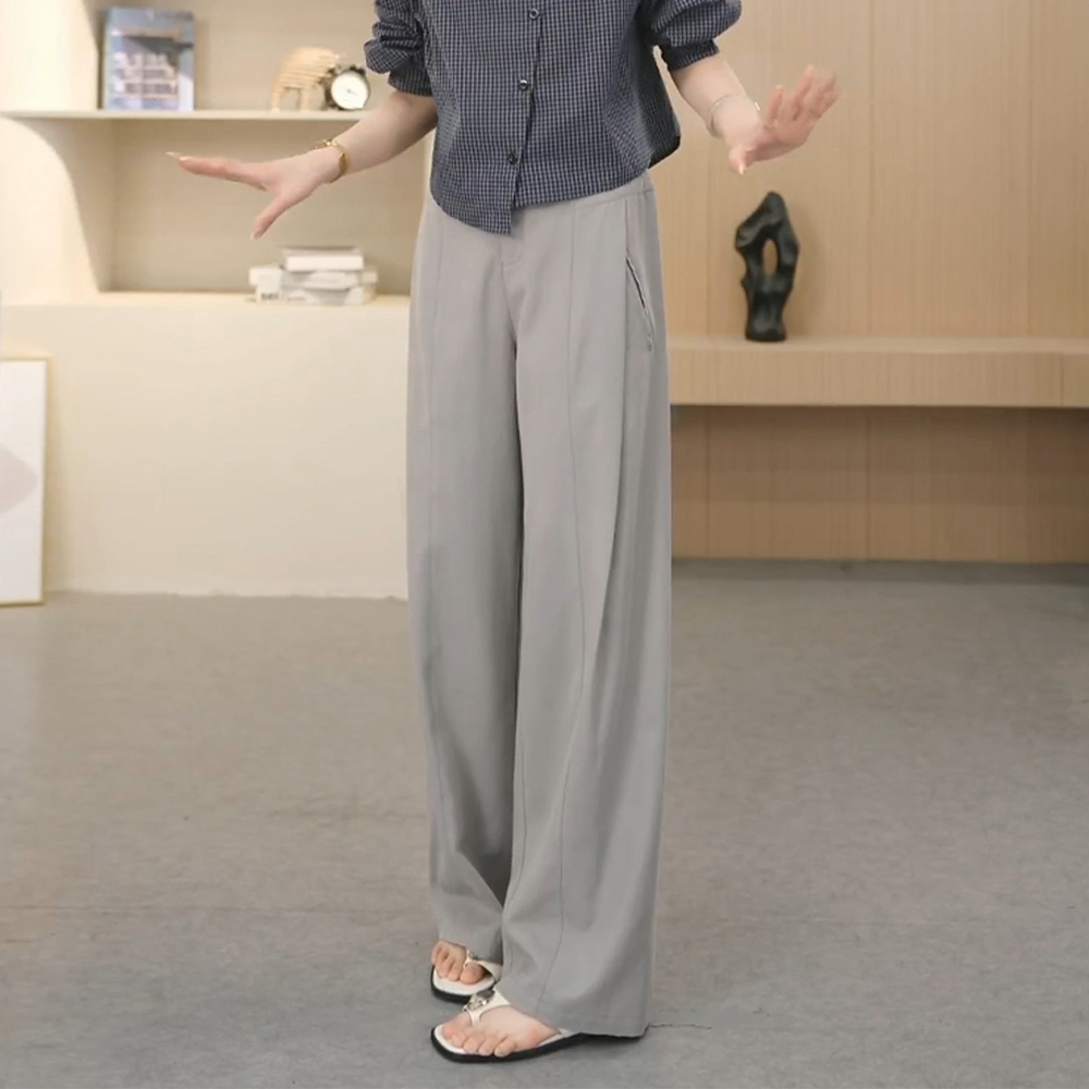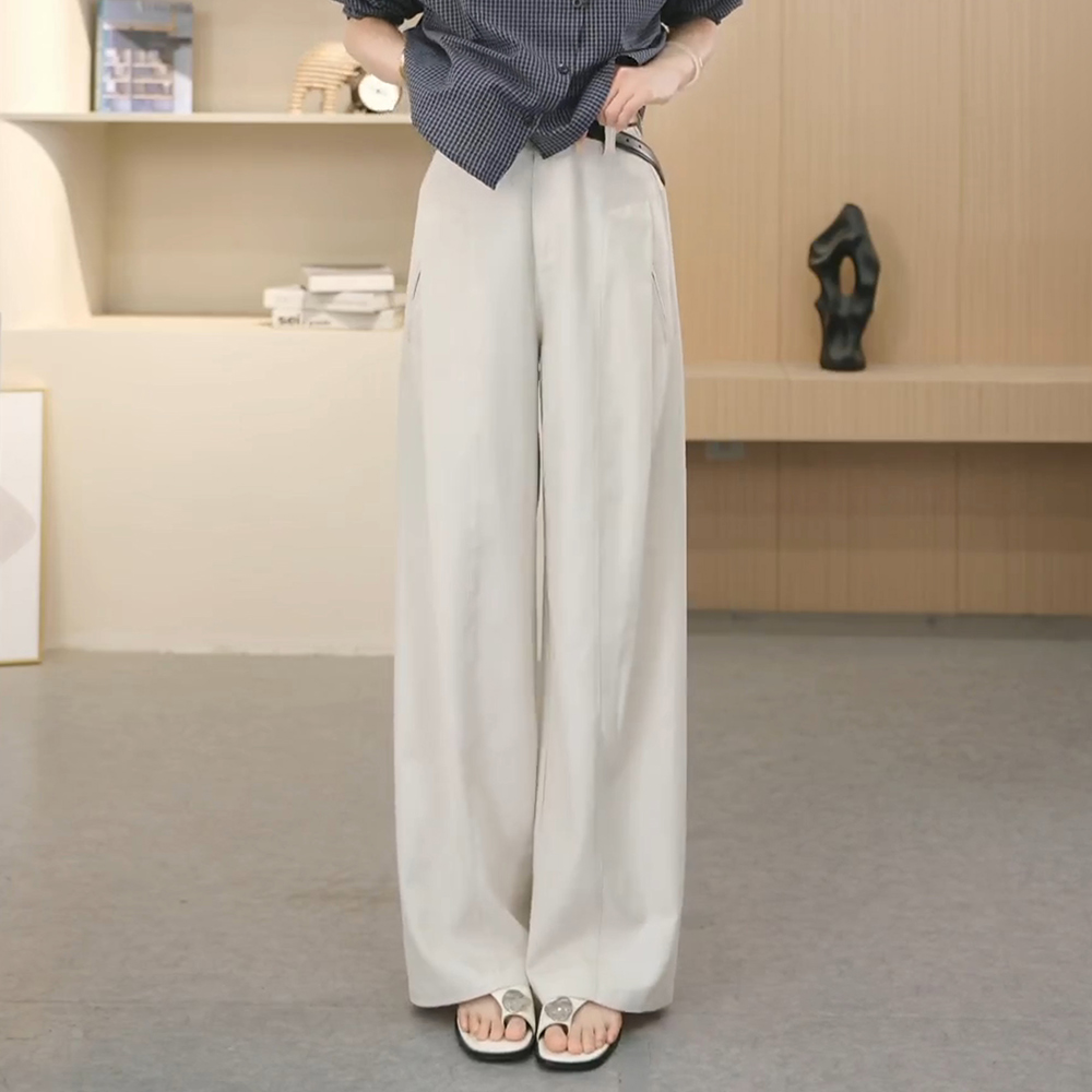 女夏新款 子官方正品 薄款 卡其色显瘦直筒女裤 休闲裤 天丝棉麻风琴裤