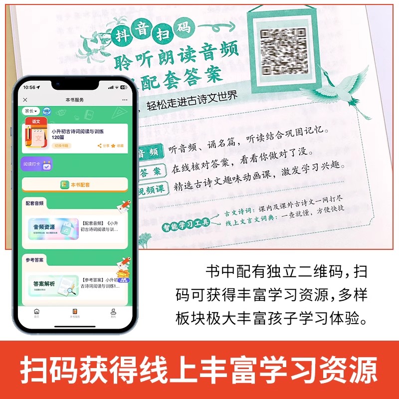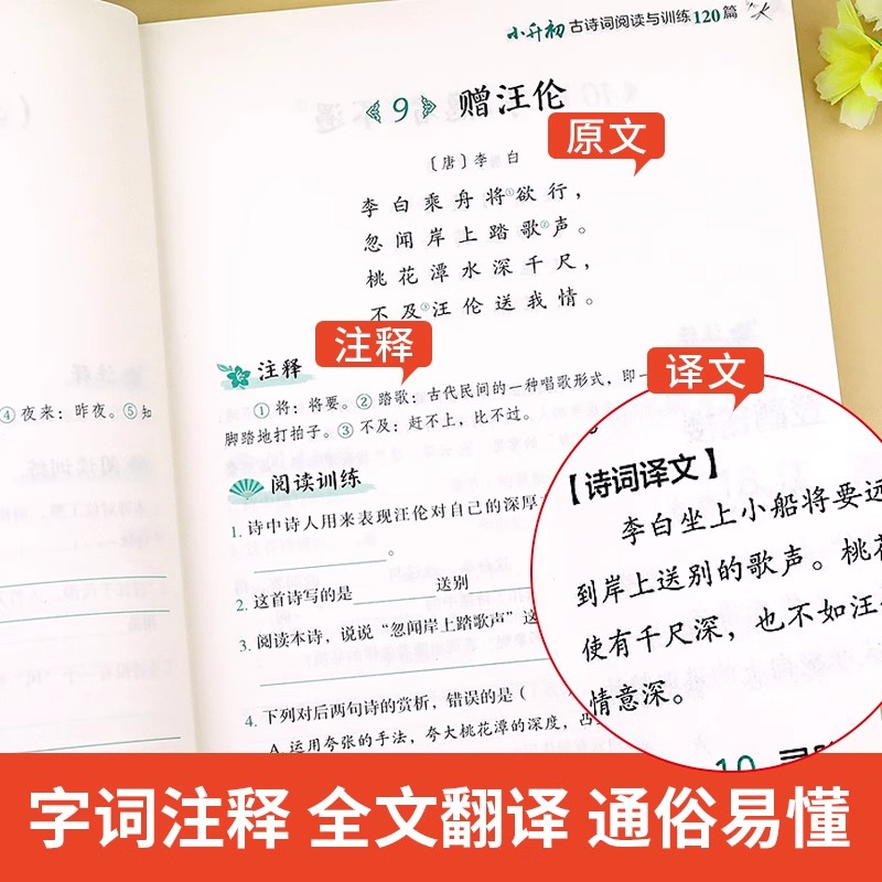 小学升初古诗词阅读与训练120篇人教版 小学生必背古诗词75十80首鉴赏赏析深度阅读六年级上册下册新编课内外古诗文专项训练强化