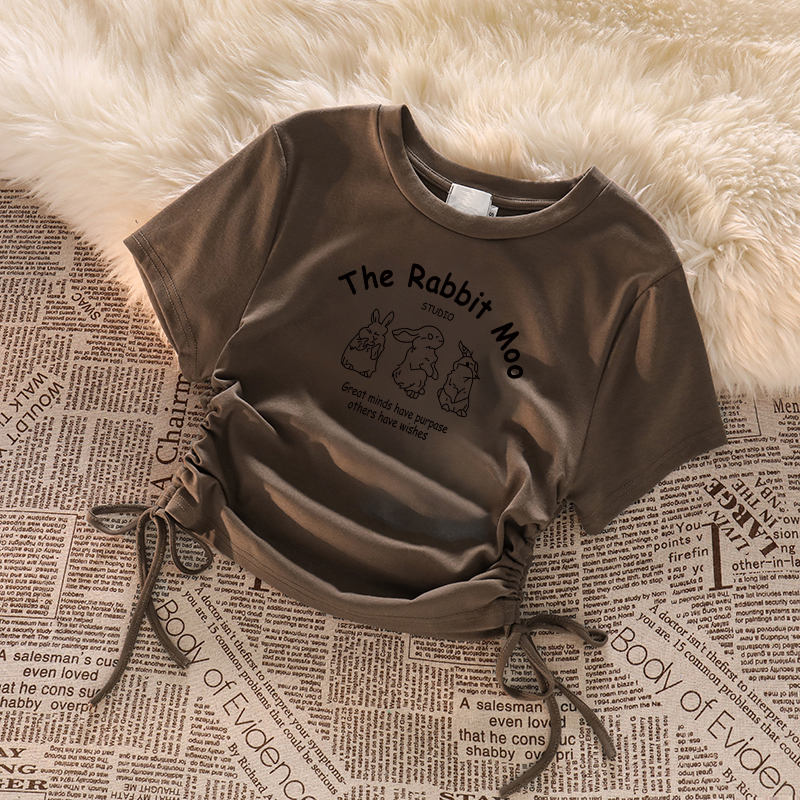 大码 不规则短款 2025新款 t恤夏季 正肩纯欲甜辣休闲上衣服 抽绳短袖