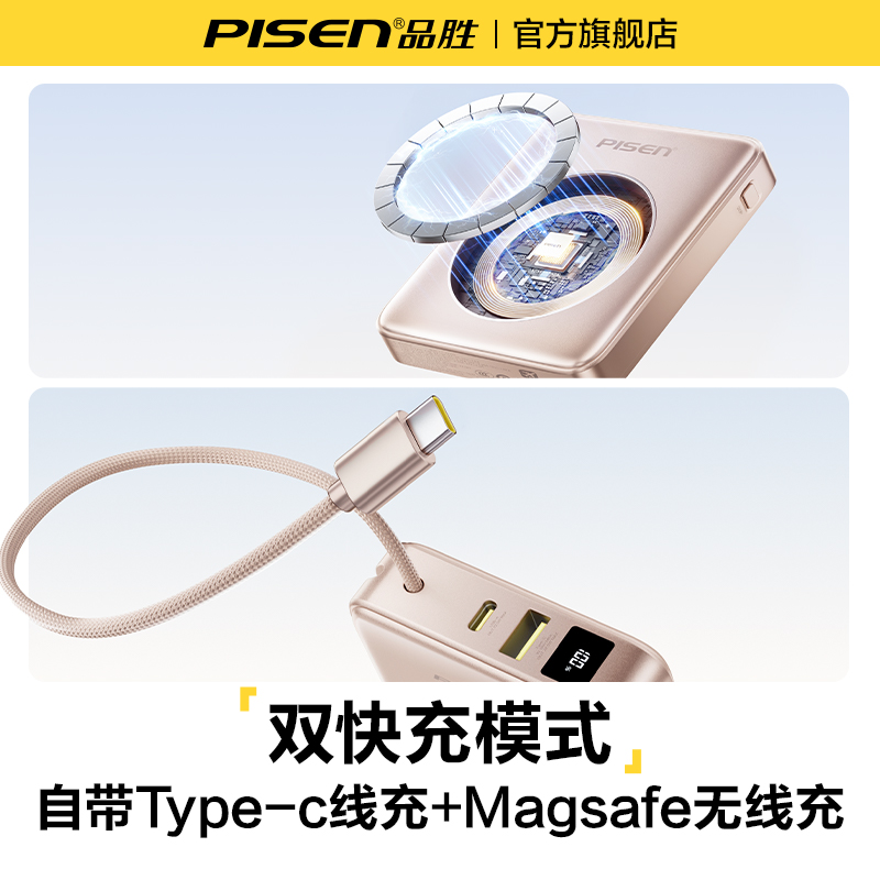 自带线magsafe无线快充适用于华为苹果17 品胜超mini磁吸充电宝2025新款 16小巧便携可上飞机 3C认证充电宝