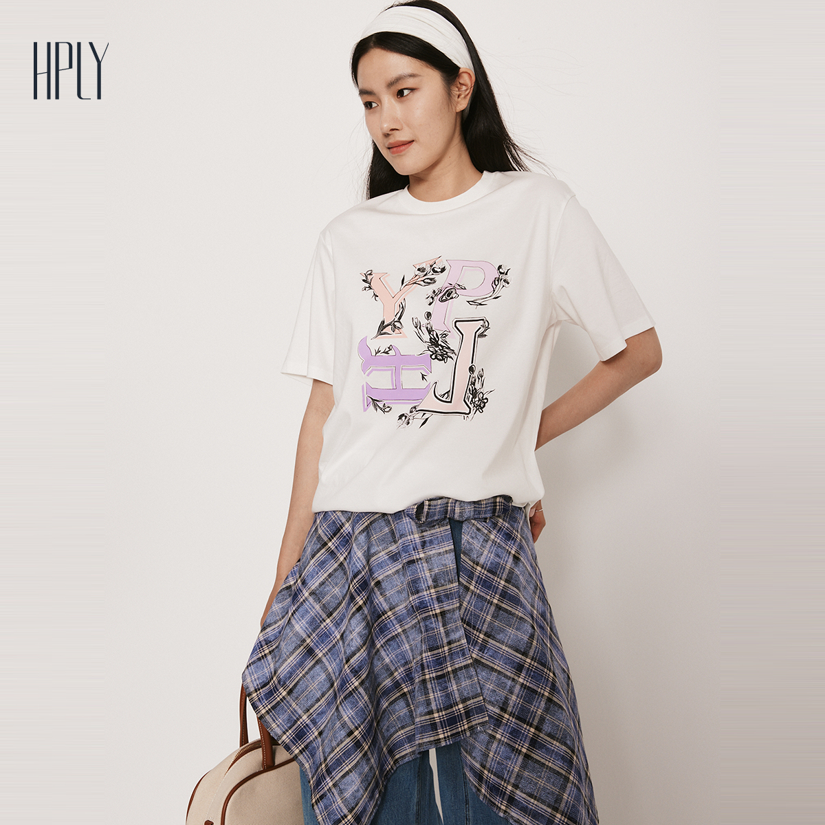 女圆领休闲图案通勤字母T恤 HPLY荷比俪25夏新款 商场同款