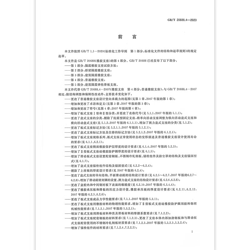第4部分:普通橡胶支座 社 中国标准出版 2007 代替GB 橡胶支座 2023 20688.4 2023年