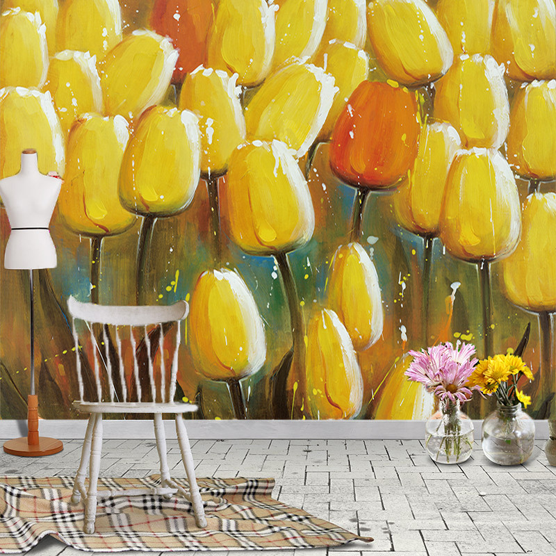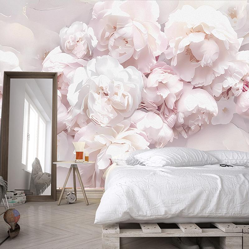 奶油风床头背景墙壁画美容院墙纸自粘美甲店墙壁贴纸卧室花卉贴画