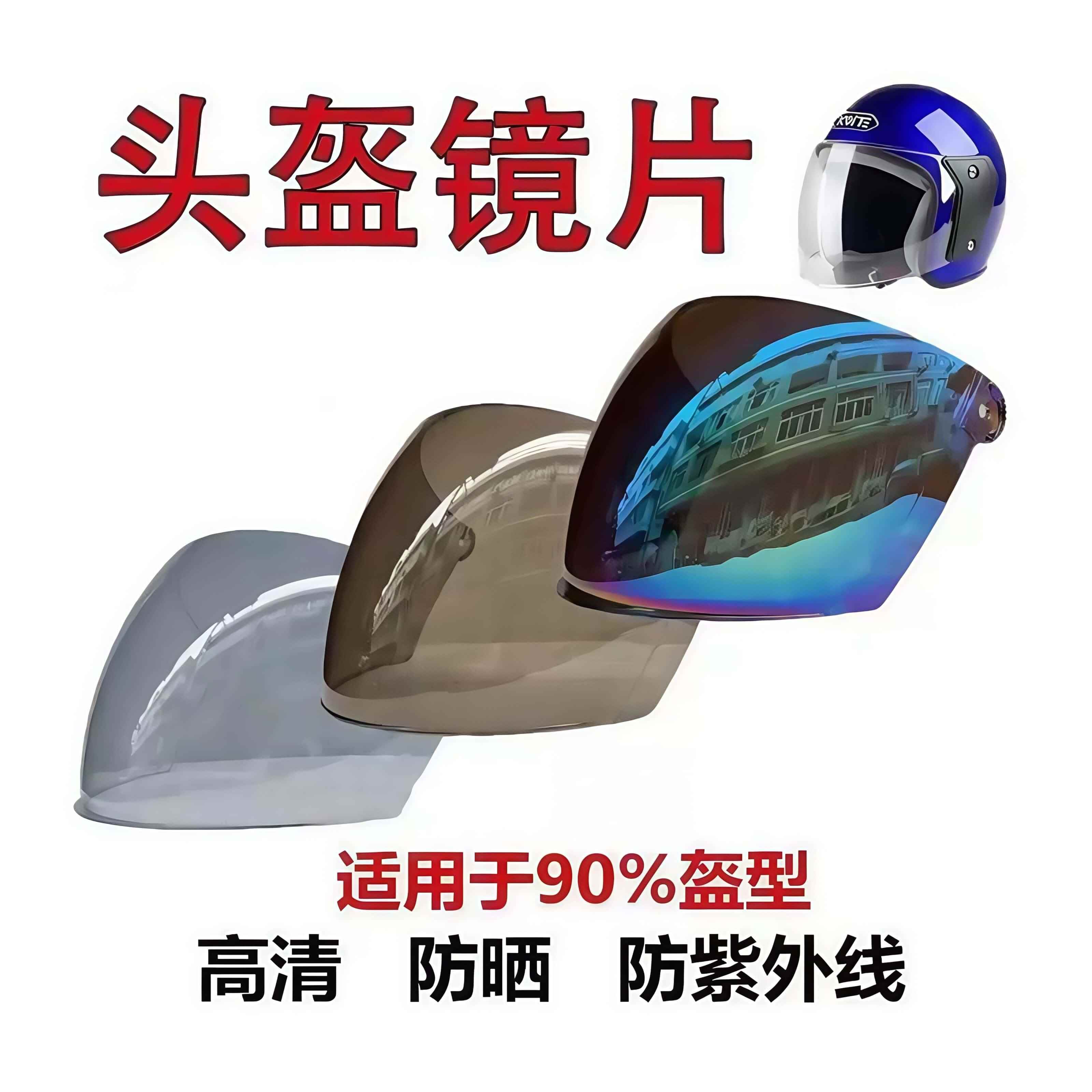 摩托车头盔防雾面罩镜片防紫外线安全帽通用前挡风镜玻璃防风高清