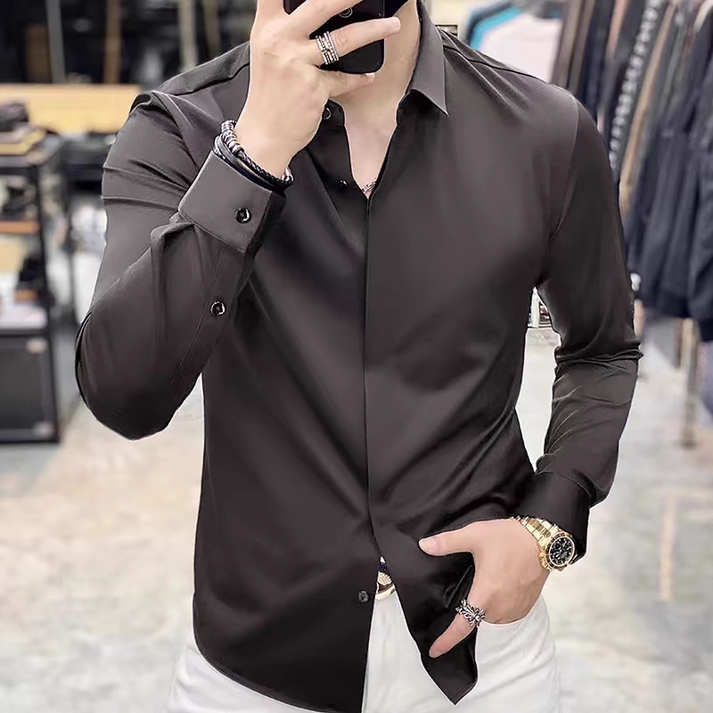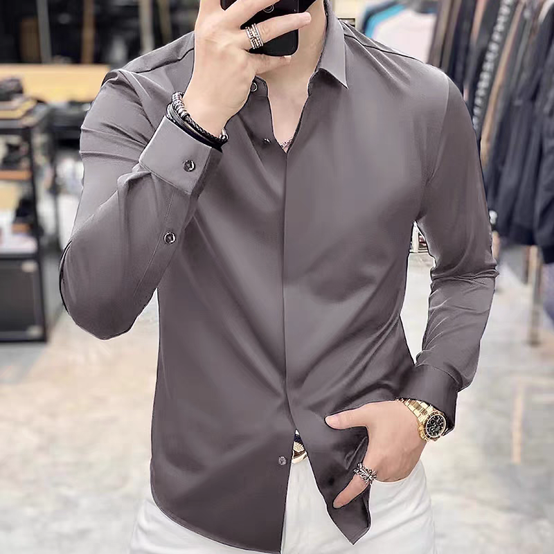 时尚 百搭长袖 商务工装 高弹免烫 衬衣 新款 罗蒙男士 2025秋季 衬衫
