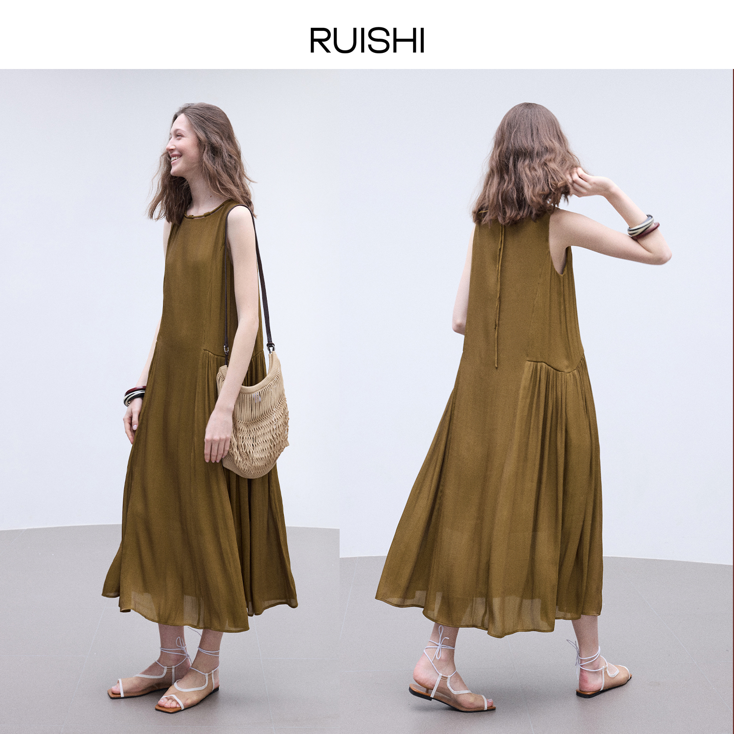 复古工装 KEIKO 美式 新款 风咖色长裙 设计感斜肩背带连衣裙25秋季