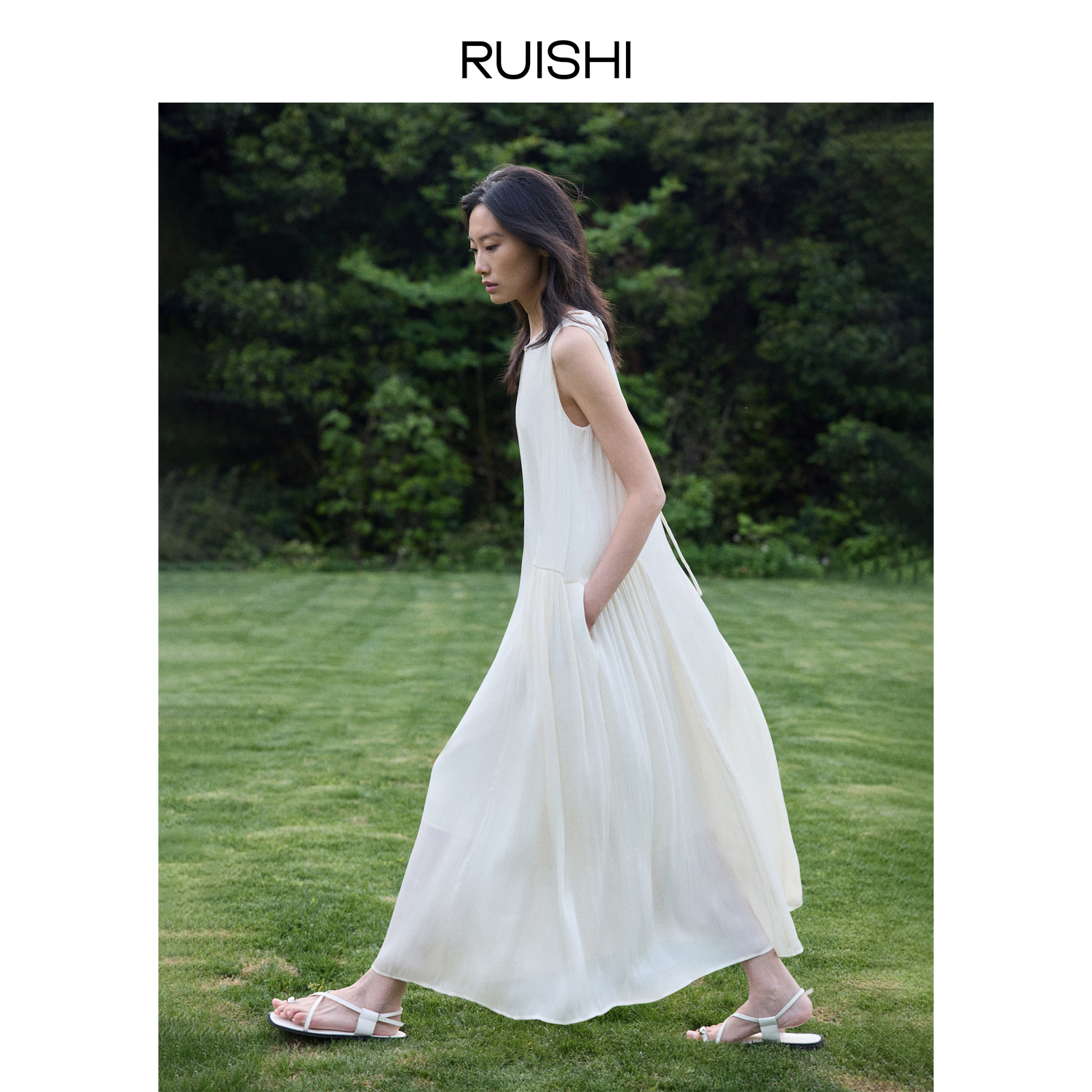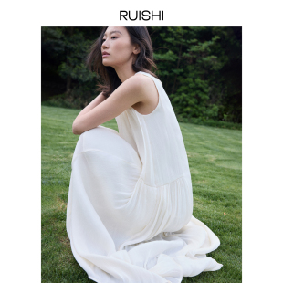 直筒长裙 优雅风肌理无袖 德玛纳假两件剪花白色连衣裙女25夏季 新款