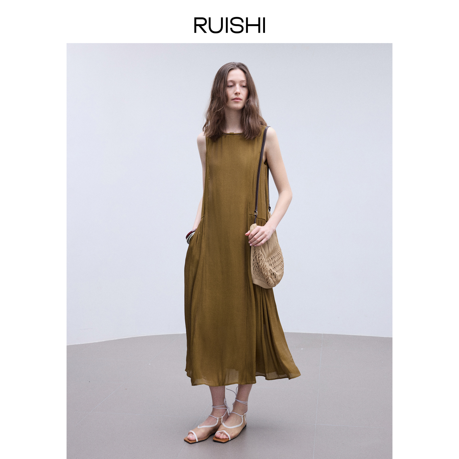 收腰显瘦A字裙 连衣裙2025秋新款 衣纱布菲墨笺 赫本风假两件修身