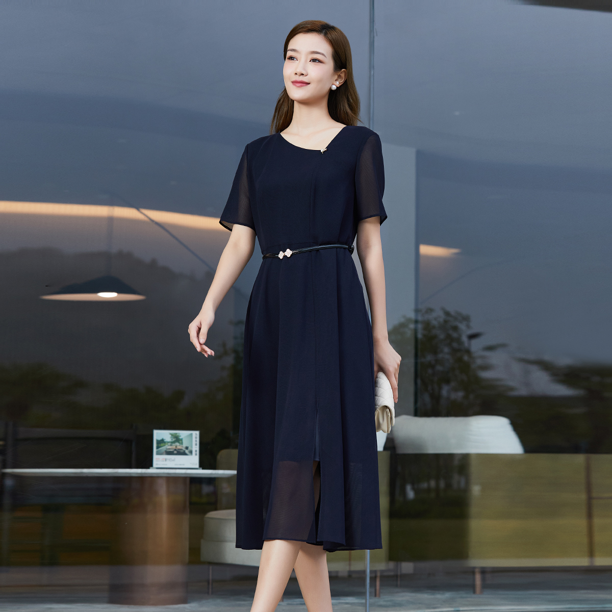 气质不规则V领知性连衣裙女1D22L3019 时尚 歌蒂诗夏季 专柜新款