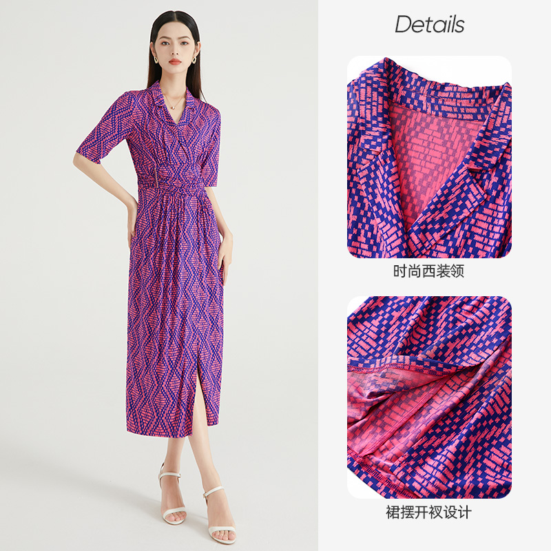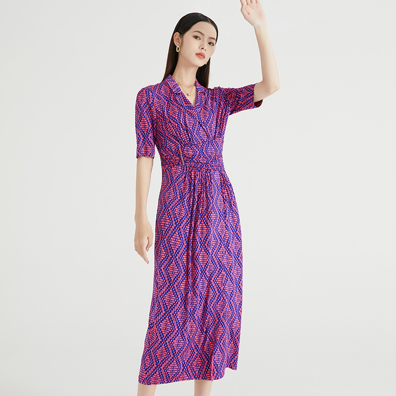 复古拼接七分袖 粉蓝衣橱2025春秋新款 轻礼服连衣裙女 红韵启年