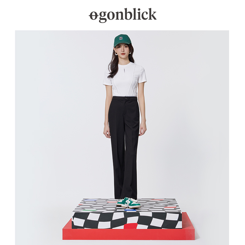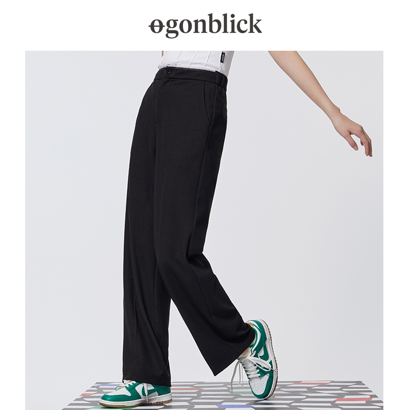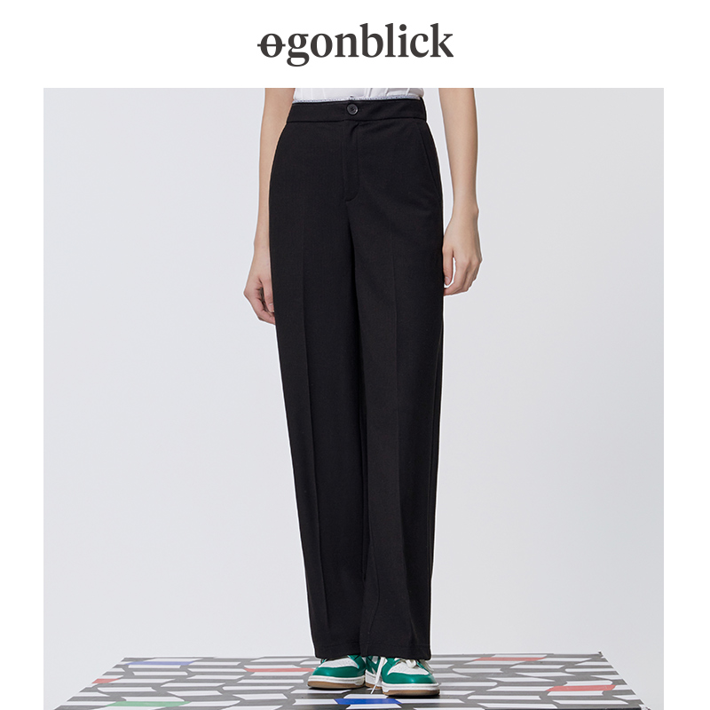 直筒阔腿裤 北欧时刻黑色西装 小个子窄版 女高腰显瘦垂感休闲西裤 裤