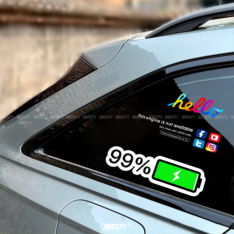 电动汽车贴纸创意电量显示车贴车身划痕遮挡遮盖充电口装 饰反光贴