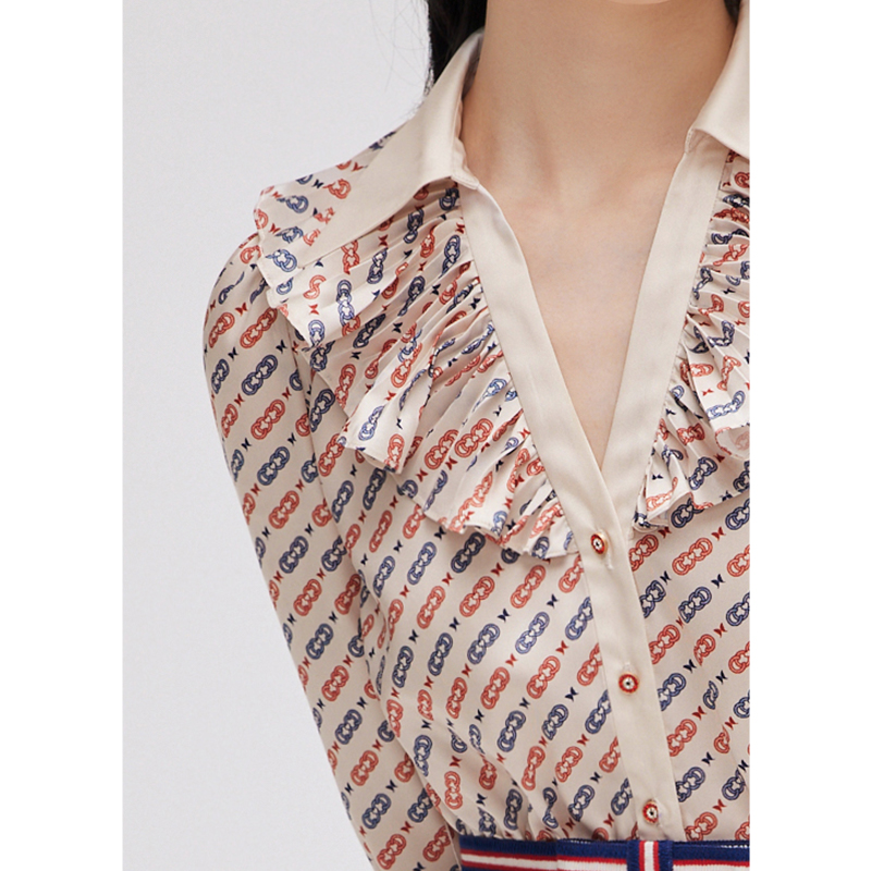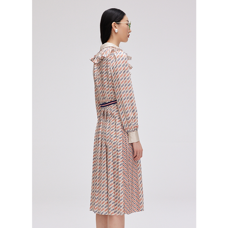 连衣裙 裙子秋冬收腰印花设计V领中长款 商场同款 可可尼COCOON时尚