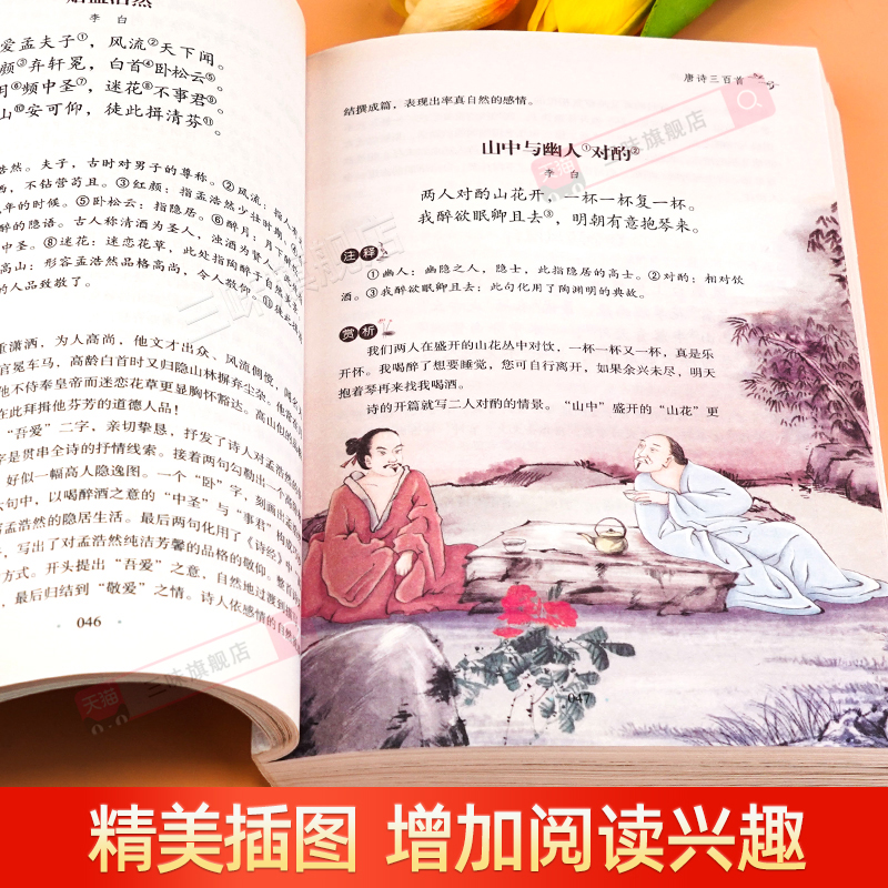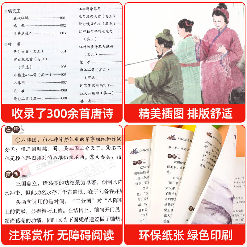 课外阅读书籍小学生三四年级五六年级上册下国学经典 彩图带注释青少年版 唐诗300首中国古诗词大全集背诵无障碍阅读 正版 唐诗三百首