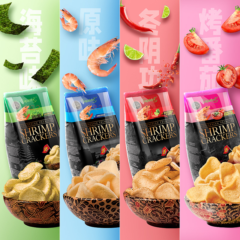 papatonk啪啪通虾片印尼进口蒜味薯片泰式 脆虾片休闲零食鲜虾片