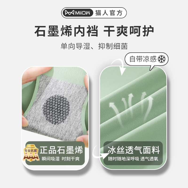 大码 无痕透气亲肤薄真丝莫代尔三角裤 女 蕉内银皮500E女士内裤 3件