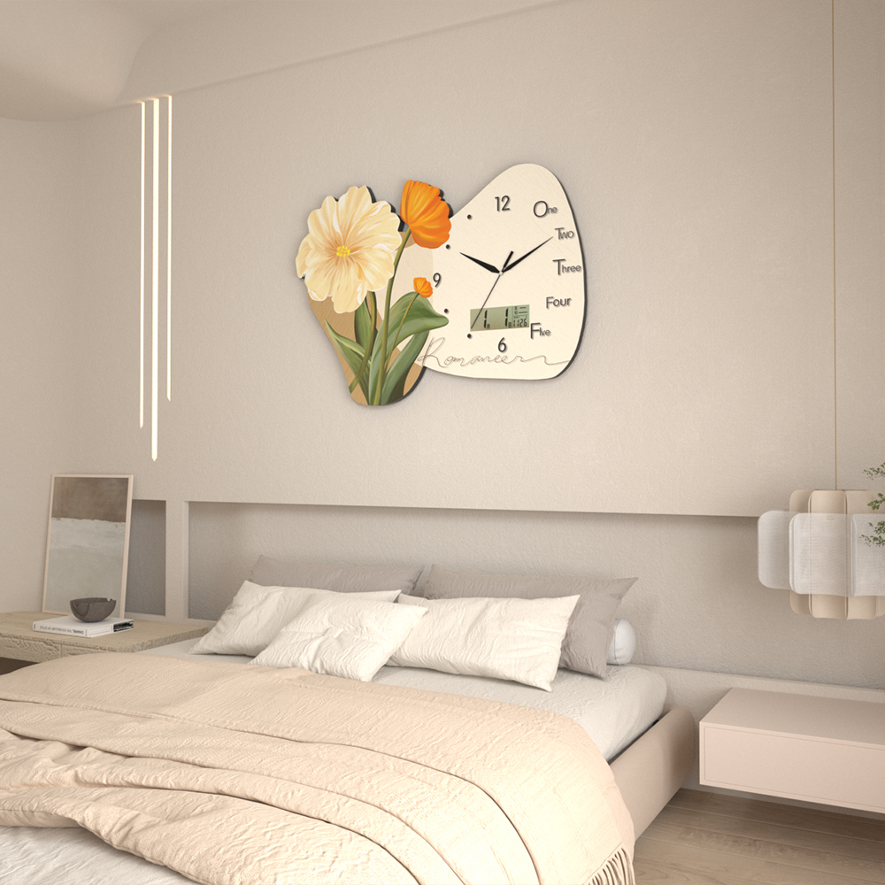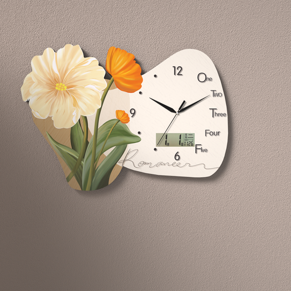 创意钟表客厅挂钟家用免打孔简约大气装 饰时钟静音卧室石英钟挂表